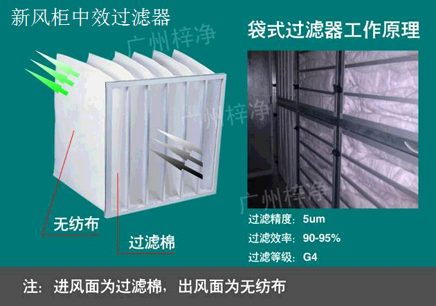 新風(fēng)柜中效過濾器(又稱為中效空氣過濾器或者中效過濾網(wǎng))主要阻擋0.5微米以上灰塵顆粒,具有過濾面積大、容塵量大、低阻力,能重復(fù)清洗使用等優(yōu)點(diǎn)。