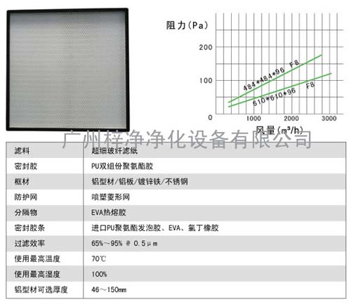 E、過濾效率:F6:65%@1.0μm、F7:85%@1.0μm、F8:90%@1.0μmH、F9:95%@0.5μm
