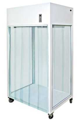 鋼板烤漆采樣車采用垂直層流的氣流形式。變速離心風(fēng)機將負壓箱內(nèi)經(jīng)過預(yù)過濾器過濾后的空氣壓入靜壓箱,再經(jīng)高效過濾器進行二次過濾,從高效過濾器出風(fēng)面吹出的潔凈氣流,以一定的均勻的斷面風(fēng)速通過工作區(qū)時,將塵埃顆粒和生物顆粒帶走,從而形成無塵無菌的工作環(huán)境。