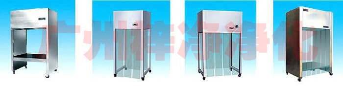 送風(fēng)體內(nèi)裝有超細玻璃纖維濾料制造的過濾器,多翼前向式低噪音變速離心風(fēng)機,出風(fēng)面散流板上安裝照明日光燈及紫外線殺菌燈。為了便于工作人員工作和觀察,潔凈工作區(qū)操作面兩側(cè)擋板采用透明玻璃制作,前后擋風(fēng)條為透明環(huán)保材料塑膠。