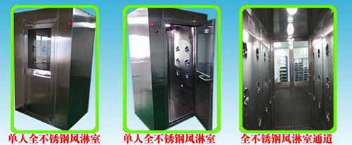 不銹鋼風淋室它是人員或貨物進入潔凈區(qū)由風機通過風淋噴嘴噴出經(jīng)過高效過濾的潔凈強風吹除人或物體表面吸附塵埃的一種通用性很強的局部凈化設(shè)備。
