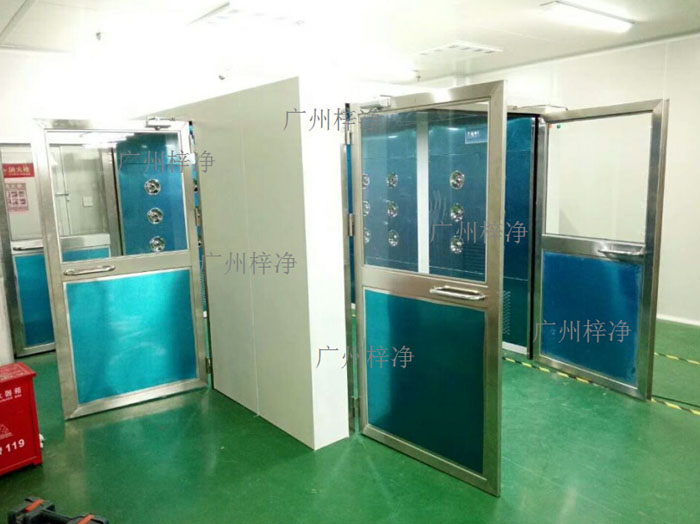 按照風淋室開門方向分類,風淋室一般分為直角風淋室和轉(zhuǎn)角風淋室兩種。直角風淋室兩扇門是正對面的,直進直出,結(jié)構(gòu)相對簡單。轉(zhuǎn)角風淋室可以根據(jù)客戶現(xiàn)場的實際情況來定做,轉(zhuǎn)角風淋室的獨特之處是風淋室兩扇門的門方向成九十度,工作人員從正門進去,風淋完畢后從左側(cè)進入潔凈室或從右側(cè)進入潔凈室。