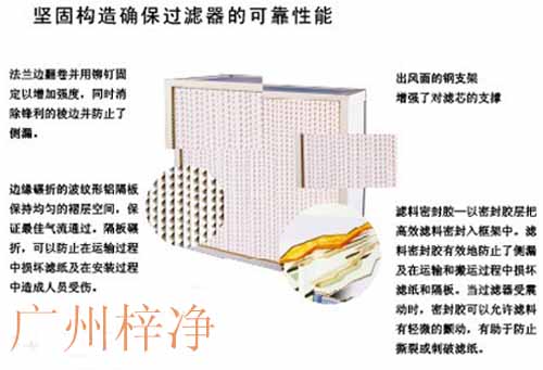 我們采用公司特制的鋁箔或膠版紙做間隔片,使得空氣分布均勻且風速勻稱,達到高效過濾;梓凈生產(chǎn)的每臺高效過濾器均嚴格按照標準采用業(yè)檢測設備進行檢測,保證出廠之空氣過濾器產(chǎn)品100%合格;