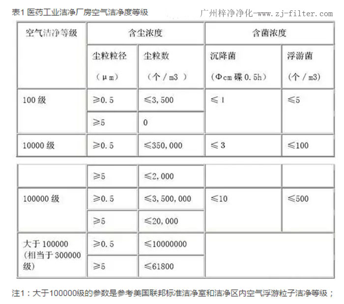 (表1為《醫(yī)藥工業(yè)潔凈廠房設(shè)計規(guī)范GB/T14294-1993》中醫(yī)藥工業(yè)潔凈廠房空氣潔凈度等級)。推薦:初效空氣過濾器??中效空氣過濾器??高效空氣過濾器